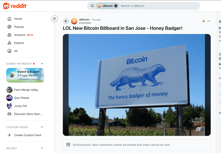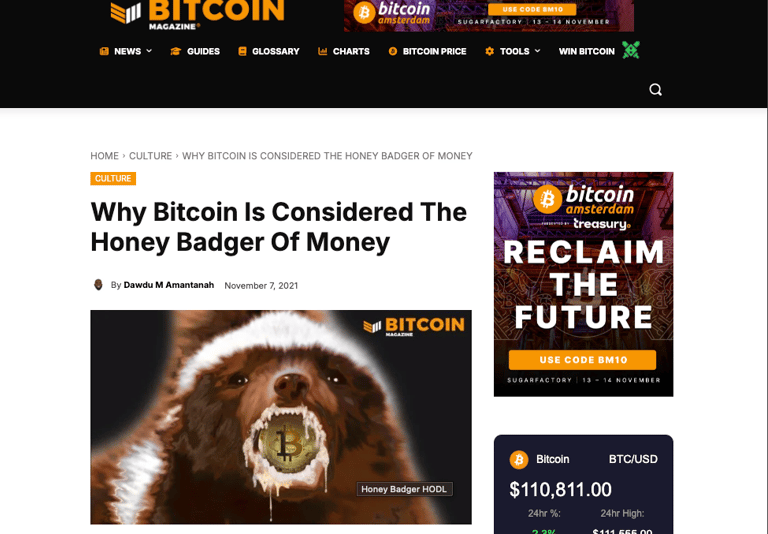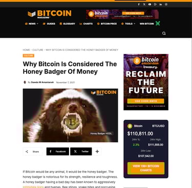 The Honey Badger began as Bitcoin’s spirit animal, a symbol of resilience and defiance. In its earliest years, Bitcoin was attacked, banned, and dismissed, yet it survived every attempt to suppress it. Like the honey badger itself, it absorbed the chaos and kept moving forward. It became proof that decentralized ideas cannot be destroyed.